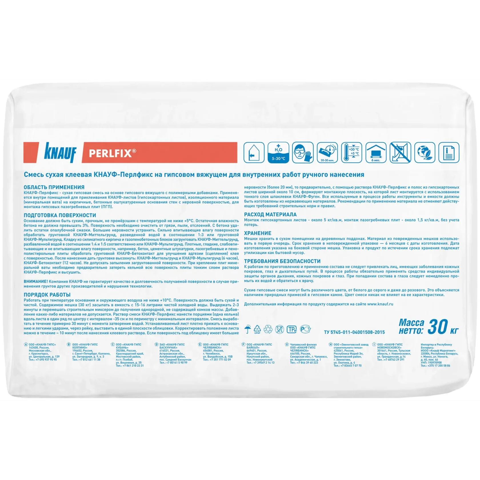Клей гипсовый монтажный Knauf Перлфикс 30 кг